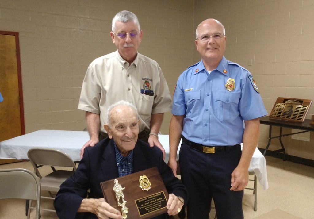 Two members of the Odenton Volunteer Fire Company receive awards from the Maryland State Firemen’s Association